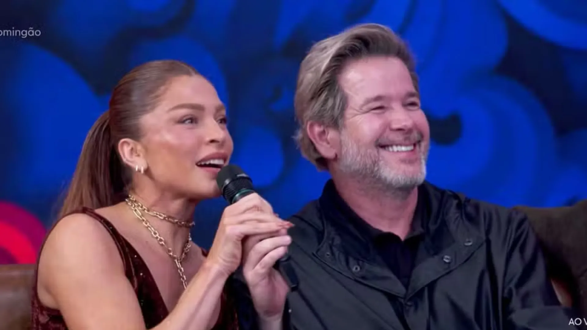 Luciano Huck lembrou sobre a ‘tradição de casar’ de Murilo Benício e Grazi Massafera reagiu durante o Domingão com Huck.