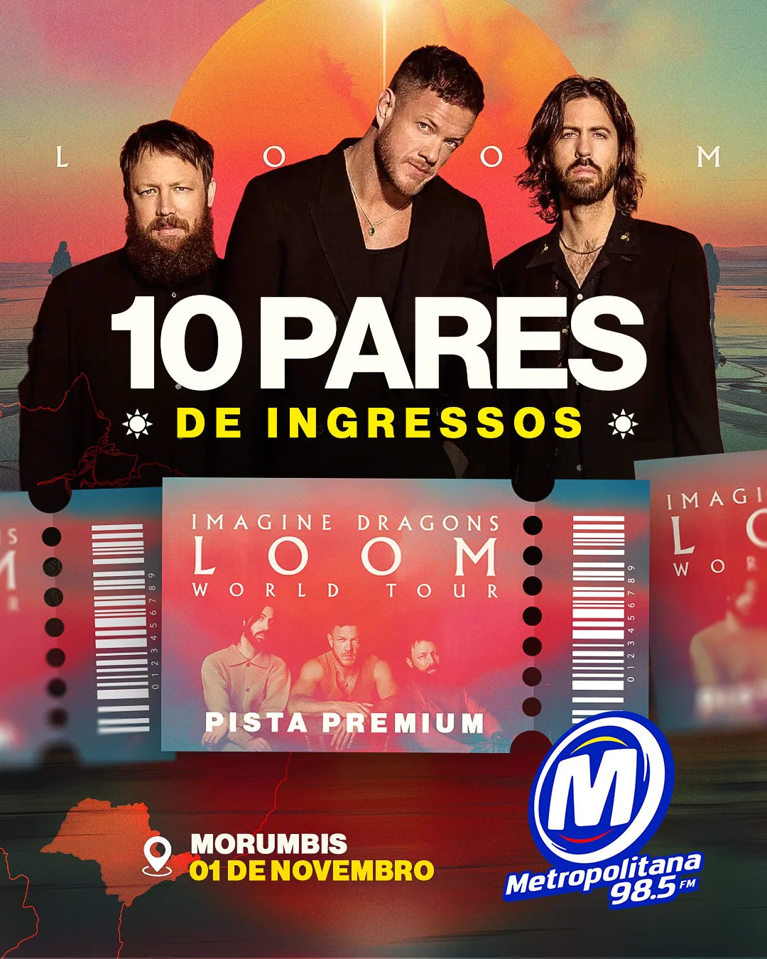 FEEL THE THUNDER 🎶 A Metropolitana vai sortear 10 pares de ingressos, pista premium pro show do Imagine Dragons, dia 01/11. 😍