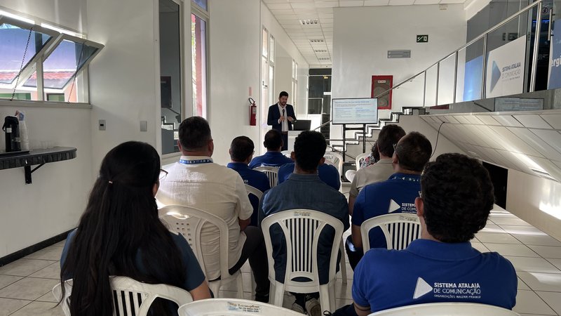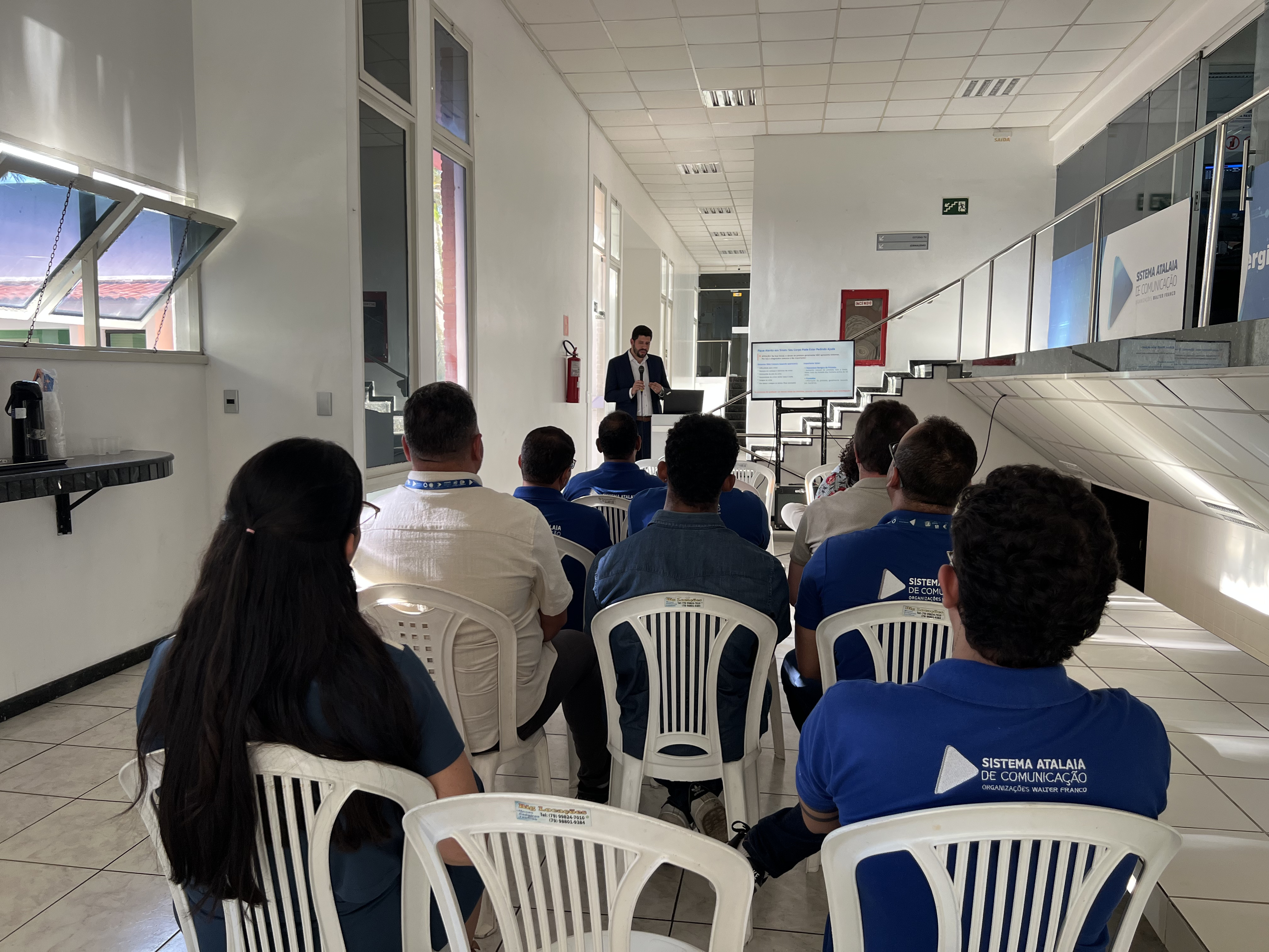 “A palestra com relação à segurança contra incêndio é para que os colaboradores do Sistema Atalaia de Comunicação gerem uma resposta adaptativa coerente com relação a qualquer equipamento, seja um veículo, um equipamento elétrico dentro de estúdio, um ar-condicionado. Venha a ter um princípio de incêndio, possa gerar uma resposta adequada com os recursos que têm disponível aqui, que são os extintores.”