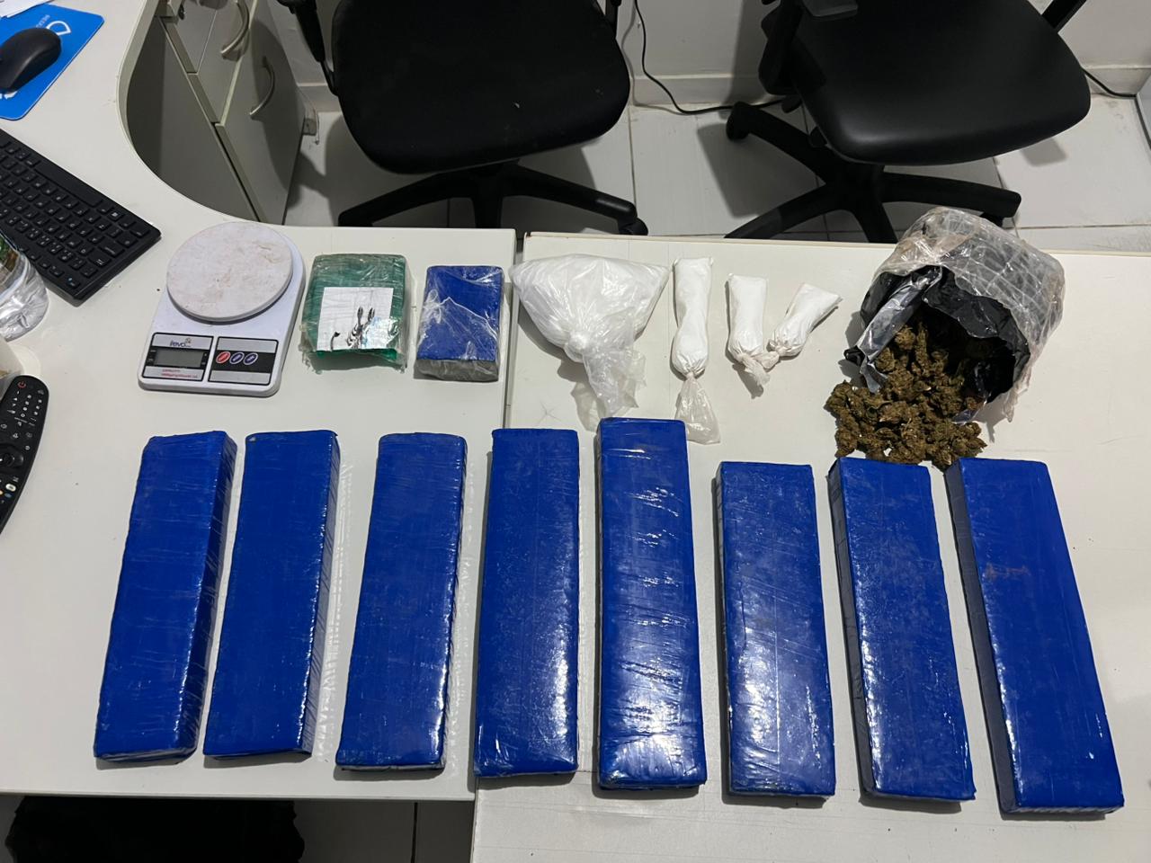 De acordo com a Polícia Civil, as diligências começaram após a polícia receber informações de que o suspeito estaria armazenando entorpecentes. Durante a ação, os agentes localizaram o homem e apreenderam cerca de 10 quilos de drogas, entre porções de maconha prensada, maconha do tipo flor, além de cocaína e crack.