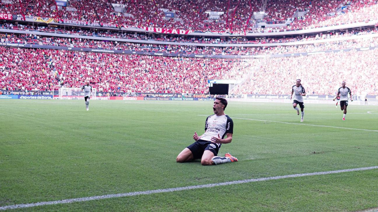 Yuri Alberto, aos 52 minutos, matou a partida. O atacante foi lançado por trás da zaga, deu um toque por cima de Rossi, driblando o goleiro, e cabeceou no fundo da rede. Corinthians 2 x 0 Flamengo!