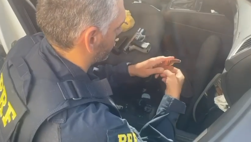 Durante a ação, os agentes também localizaram uma pistola calibre .380, 17 munições e porções de drogas – cocaína e maconha – escondidos em uma bolsa embaixo de um dos bancos do veículo.