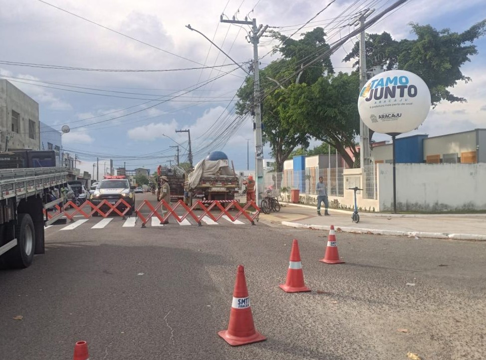 Neste sábado (21), a rua José Francisco Prejuízo está temporariamente bloqueada para a instalação da estrutura e realização do evento “Tamo Junto”, ação da Prefeitura de Aracaju que leva serviços públicos aos bairros da capital.