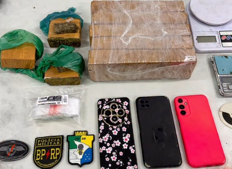 Também foram apreendidos três aparelhos celulares, duas balanças digitais e sacos para embalagem da droga.