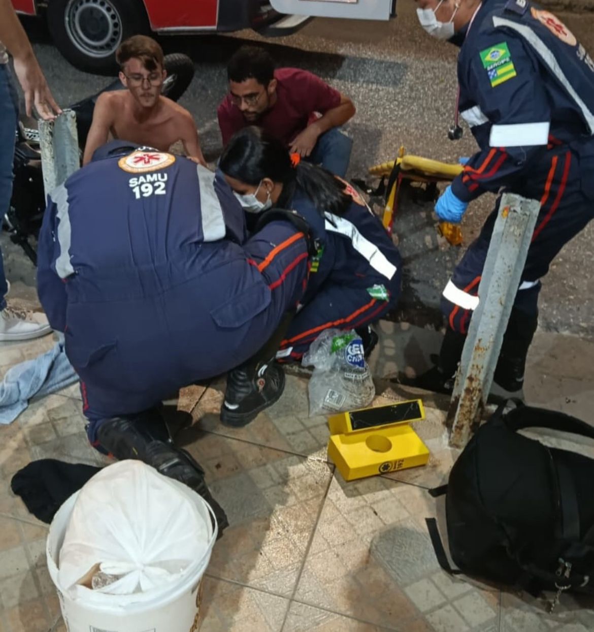Um motociclista de 20 anos ficou gravemente ferido depois de ser atropelado por um carro na noite de segunda-feira (23) no bairro São José, em Aracaju.