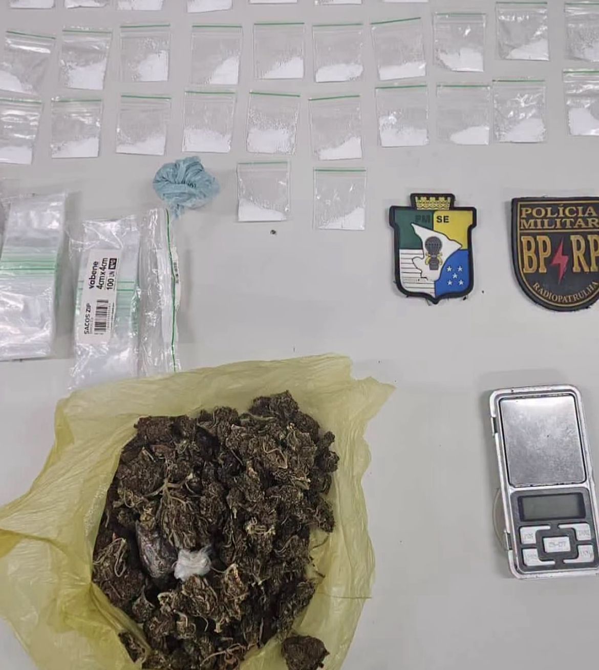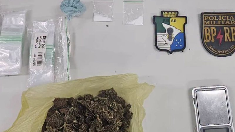 Além das drogas, também foram encontrados uma balança digital e diversas embalagens utilizadas para fracionar e comercializar o material.