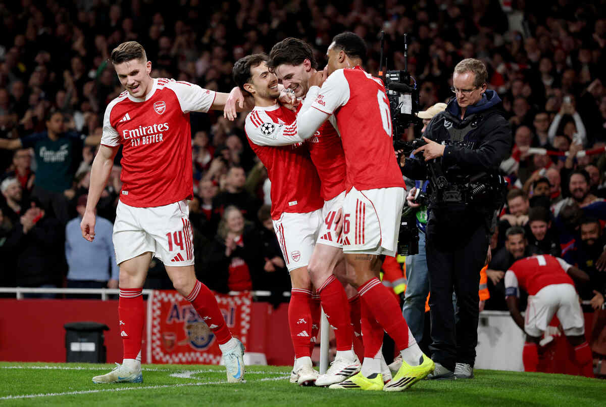 Home / Esporte / Com golaços, Arsenal vence Leverkusen e vai às quartas da ChampionsEsporteCom golaços, Arsenal vence Leverkusen e vai às quartas da ChampionsPor redacaotribunase Nenhum comentário18/03/2026 12:28 AM Eze e Rice marcam em cada tempo e garantiram vitória dos Gunners Fonte: SBT Sports Compartilhar artigoPrevious ArticleA melhor amiga de SpielbergNext ArticleBBB 26: Jordana dobra prêmio pela segunda vez na dinâmica Ganha-Ganha Postagens relacionadas De cusparada a ‘participação em rixa’: tribunal enquadra expulsos ... 19/03/2026 Com Renato no comando, Vasco se especializa em viradas no Brasile ... 19/03/2026 Por que Jardim foi ‘vetado’ no Flamengo? À ESPN, Marcos Braz expl ... 19/03/2026 Deixe um Comentário Cancelar respostaO seu endereço de e-mail não será publicado. Campos obrigatórios são marcados com *ComentárioNome * E-mail * Site Salvar meus dados neste navegador para a próxima vez que eu comentar.