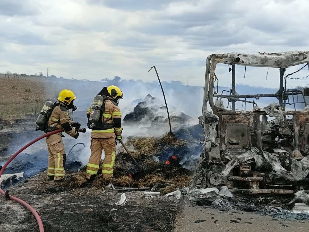As chamas chegaram a se propagar para a vegetação às margens da rodovia, mas foram rapidamente controladas pelas equipes, evitando que atingissem áreas próximas.