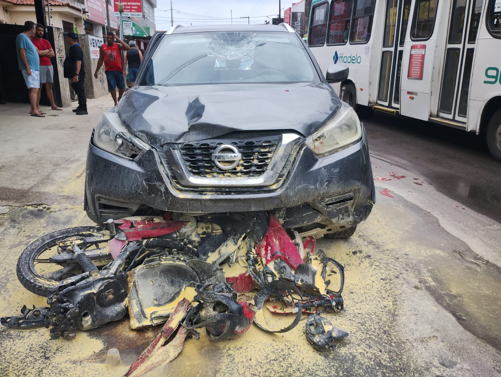 De acordo com o BPTran, o condutor do carro colidiu em uma motocicleta, atropelou a pedestre e, em seguida, bateu na traseira de um Chevrolet Prisma.