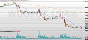 No horizonte de 60 minutos, o minidólar manteve o movimento de baixa, negociando abaixo das médias de 9 e 21 períodos.