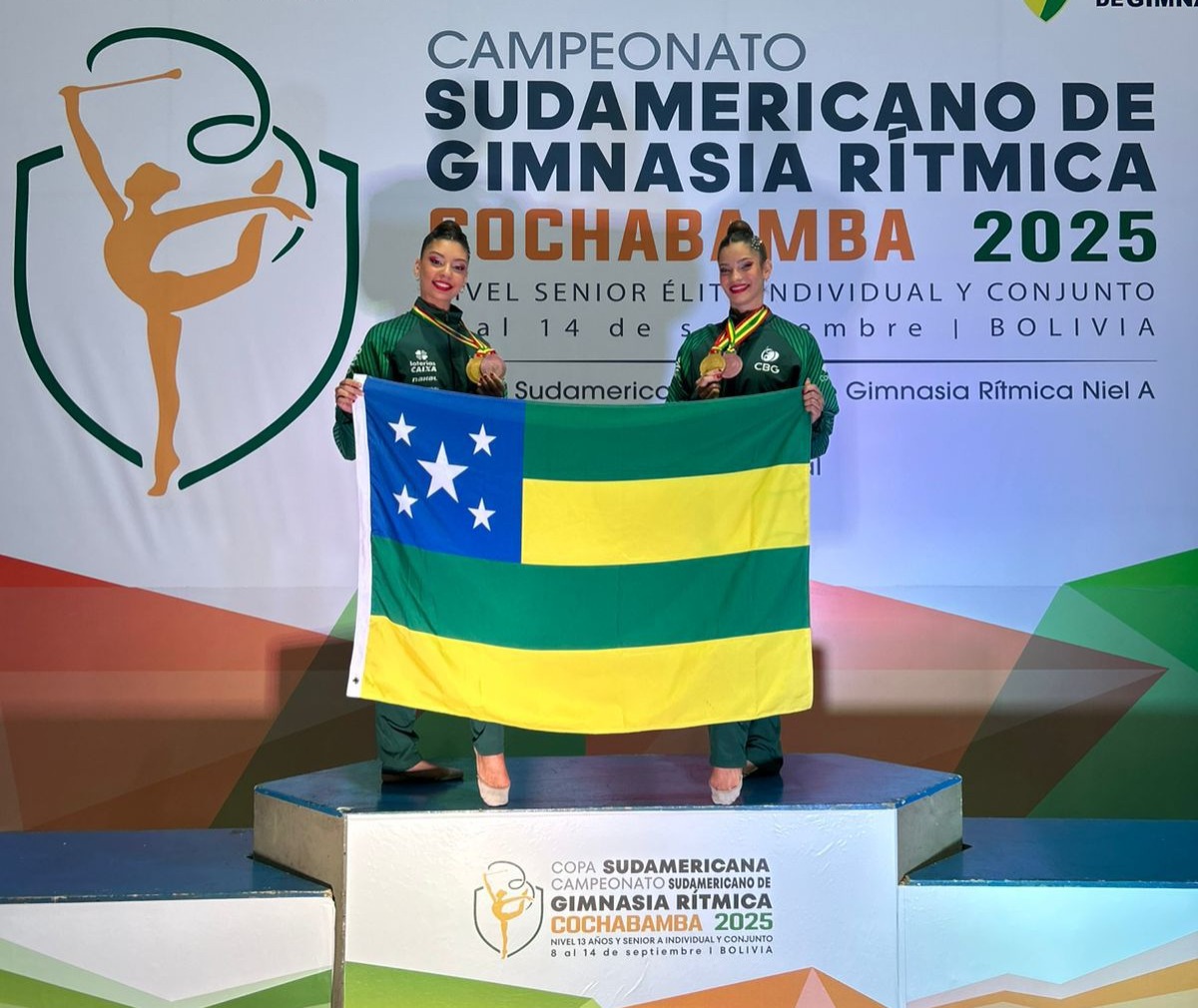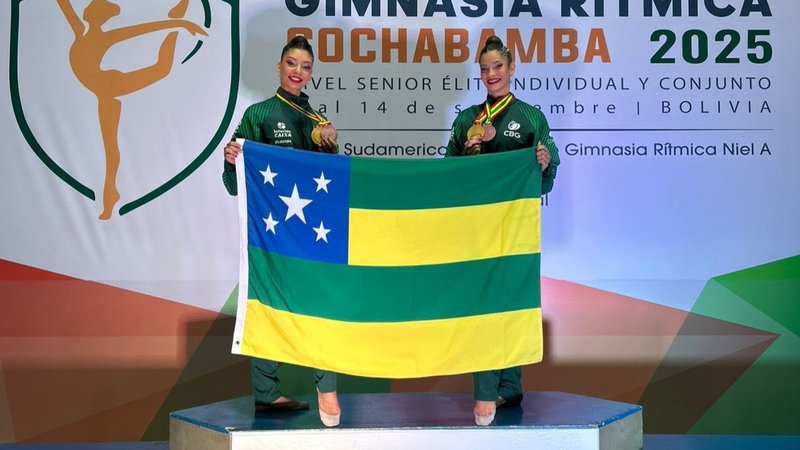 Ginastas sergipanas integrantes da Seleção Brasileira de Ginástica Rítmica conquistaram, pelo segundo ano consecutivo, o título de campeãs por equipe na categoria Dupla Sênior Elite no Campeonato Sul-Americano de Ginástica Rítmica. A competição foi realizada de 9 a 14 de setembro, em Cochabamba, na Bolívia. Além do ouro por equipes, a dupla também garantiu a medalha de bronze na prova do aparelho maças.