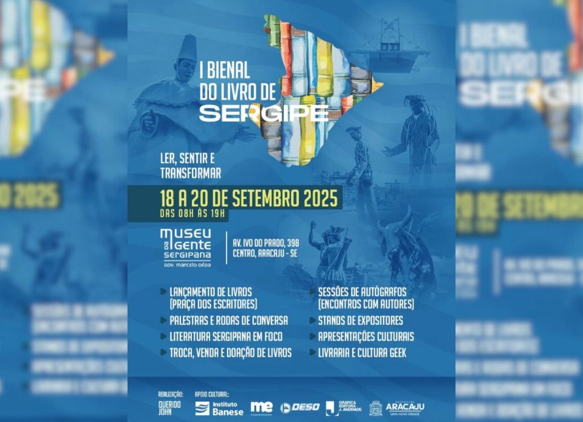 A cidade de Aracaju se torna, neste final de semana, o epicentro da literatura sergipana com a realização da “1ª Bienal do Livro de Sergipe”, que acontece de 18 a 20 de setembro, das 8h às 19h, no Museu da Gente Sergipana.