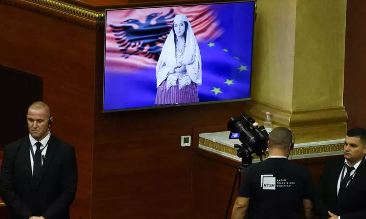 Durante sua estreia no Parlamento, Diella se apresentou por videoconferência, vestida com traje tradicional albanês.
